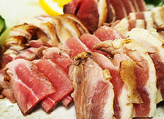 宮﨑が誇る郷土料理であるもも焼き(鶏ももの炭火焼き)を国産炭で煙にくぐらせながら焼く職人技、黒光りは美味しさの証です。レアで焼き上げたもも焼きは噛めば噛むほどその旨味が口の中でいっぱいに広がります。 先代から受け継ぐ変わらない味わい。鶏本来の旨さを思う存分堪能できます。